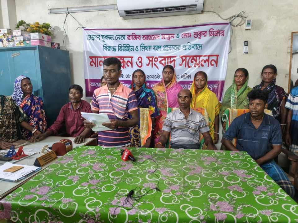 লিখিত বক্তব্যে নিরেশ চন্দ্র সেন বলেন, নিমগাছী সমাজভিত্তিক মৎস্যচাষ প্রকল্পের আওতায় গুড়পিপুল ছয়ঘাটি পুকুরটি উপজেলা মৎস্য অফিস থেকে ৩০ জুন’২০২৫ তারিখে বিধি মোতাবেক ডিসিআর কেটে ৩০ জন সুফলভোগী সদস্য মৎস্য চাষ করতে শুরু করি। কিন্তু আমরা গরীব সুফলভোগী সদস্য হওয়ায় ওই পুকুরে মাছ চাষ করতে ব্যর্থ হই। ফলে সকল সুফলভোগী সদস্যদের সম্মতিক্রমে ওই পুকুরটি তাড়াশ যুবদল নেতা রাজিব আহম্মেদ মাসুম ও শুকুর মির্জার নিকট সাব-লীজ প্রদান করি। সাব-লীজ দেয়ার টাকা সকল সুফলভোগী সদস্যদের মাঝে হিস্যানুযায়ী বন্টন করে দেয়া হয়। কিন্তু এলাকার বনমালি, তরনীকান্ত, মধূ, প্রান্ত ও ঈশ্বর নামক স্বার্থন্বেষী ব্যক্তি সুফলভোগী সদস্য না হয়েও ওই দুই যুবদল নেতার বিরুদ্ধে ভিত্তিহীন ও মিথ্যা অপ-প্রচার চালাতে থাকে। আমরা ওই যুবদল নেতাদের বিরুদ্ধে বিভ্রান্তিকর ও মিথ্যা অপ-প্রচার করার তীব্র প্রতিবাদ ও নিন্দা জানাই। পাশাপাশি তারা ষড়যন্ত্রকারীদের দৃষ্টান্তমূলক বিচার দাবী করেন। এদিকে একই দাবীতে সকালে গুড়পিপুল ছয়ঘাটি পুকুরের সুফলভোগী আদিবাসী নারী-পুরুষেরা উপজেলা মৎস্য কর্মকর্তার কার্যালয়ের সামনে মানবন্ধন কর্মসূচি পালন করেন।
