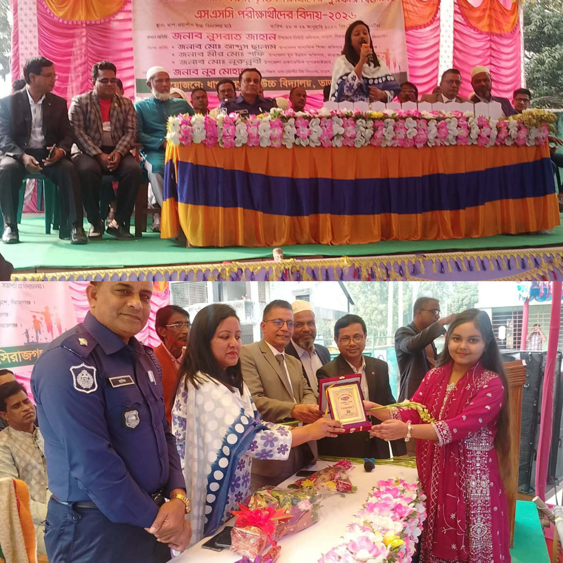 তাড়াশ সিরাজগঞ্জ প্রতিনিধি: সিরাজগঞ্জের তাড়াশে ধাপ-ওয়াশিন উচ্চ বিদ্যালয়ে কৃতি শিক্ষার্থীদের সংবর্ধনা, এসএসসি পরিক্ষার্থীদের বিদায় ও নবীনবরণ অনুষ্ঠান অনুষ্ঠিত হয়েেেছ। বৃহস্পতিার দুপুরে বিদ্যালয়ে মাঠে প্রধান শিক্ষক নুর মোহাম্মাদের সভাপতিত্বে প্রধান অতিথি হিসেবে উপস্থিত ছিলেন উপজেলা নির্বাহী কর্মকর্তা ও অত্র বিদ্যালয়ের সভাপতি নুসরাত জাহান। বিশেষ অতিথি ছিলেন মাধ্যমিক শিক্ষা কর্মকর্তা আব্দুস সালাম ও তাড়াশ থানার ভারপ্রাপ্ত কর্মকর্তা হাবিবুর রহমান। অন্যান্যদের মধ্যে উপস্থিত ছিলেন তাড়াশ প্রেসক্লাবের সভাপতি অধ্যাপক সাব্বির আহম্মেদ,সাধারণ সম্পাদক এম ছানোয়ার হোসেন সাজু, বিদ্যালয় পরিচালনা পর্ষদের সদস্য ও এলাকার গন্যমান্য ব্যক্তিবর্গ।অনুষ্ঠানে মাধ্যমিক শিক্ষা কর্মকর্তা আব্দুস সালাম ও ওসি হাবিবুর রহমান শিক্ষার্থীদের দিক নির্দেশনামুলক মুল্যবান বক্তব্য রাখেন।